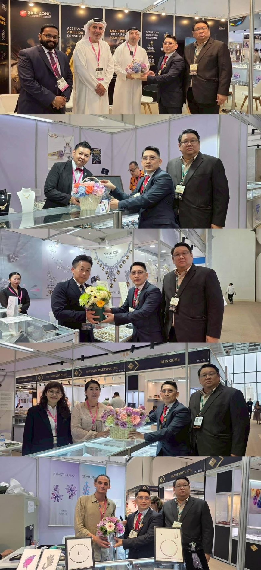 ในโอกาสนี้ คณะกรรมการจาก AGJA นำโดย ดร.อธิชัย เจริญธรรมานนท์ เลขาธิการสมาคมฯ และนายสิทธวีร์ อุดมรัตนะมณี เหรัญญิกสมาคมฯ ได้ร่วมมอบกระเช้าดอกไม้แสดงความยินดีแก่สมาชิกที่เข้าร่วมออกบูธภายในงาน เพื่อเป็นกำลังใจและอวยพรให้ธุรกิจของสมาชิกประสบความสำเร็จ